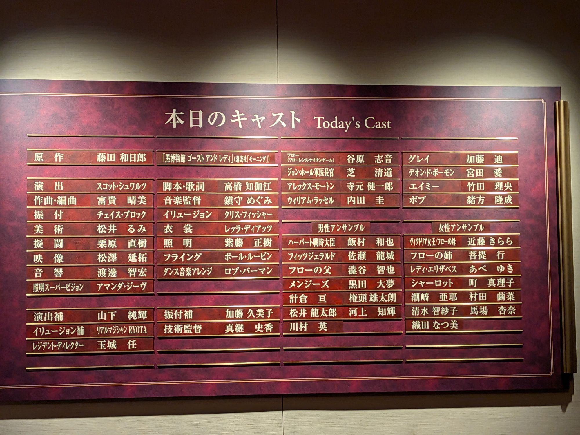 劇団四季オリジナルミュージカル『ゴースト&レディ』大阪公演。正直、そこまで興味を唆られなかった本作。しかし、世間のあまりにも高い評価を前に、一度は見ておくかと思い、全席完売になる2日前ぐらいに滑り込みで席を確保した。