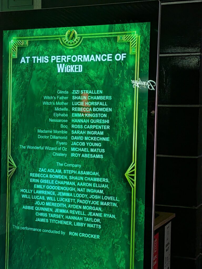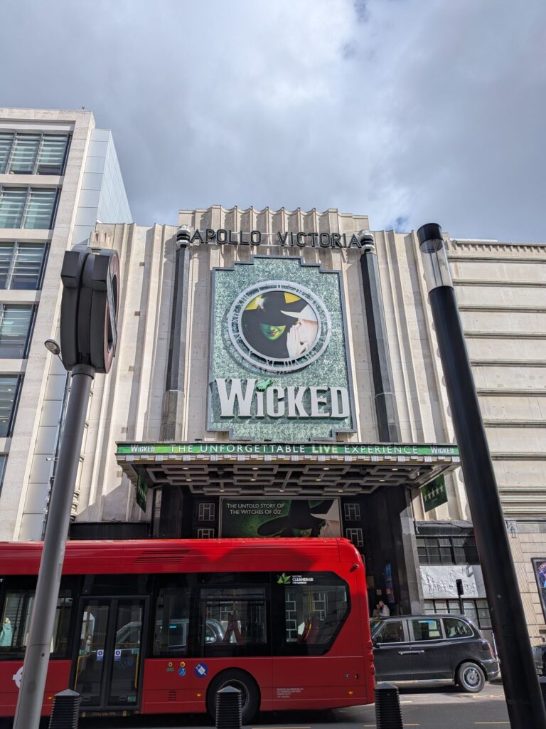 アポロ・ヴィクトリア・シアターに足を踏み入れると緑一色でデコレーションされたウィキッドの世界だった。 ウィキッドを観るのは去年の劇団四季大阪公演以来。