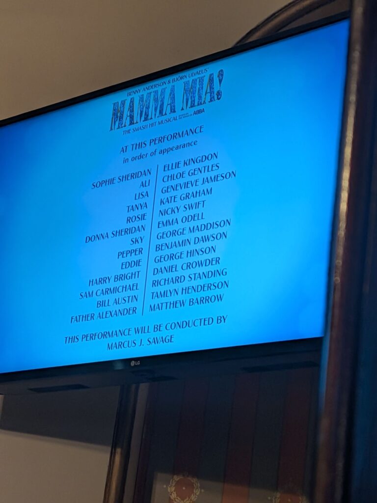 ところが、開演前にキャストボードを確認して、息をのんだ。サラ・ポイザーの名前がない。調べると、どうやら前日にタイのチェンマイで行われた友人の結婚式に出席していたらしかった。この日のドナ役は、オルタネート(プリンシパルに代わり特定の公演で出演する準主役俳優)のエマ・オデルが務めた。サムはリチャード・スタンディング。 正直、少し肩の力が抜けた。一番の目的が消えた。 それでも、幕は上がった。 エマ・オデルのドナは、パワフルだった。仕事も育児も全力で駆け抜けてきた女性の、その強さと明るさが全身から溢れていた。観ているうちに、いつの間にか引き込まれていた。