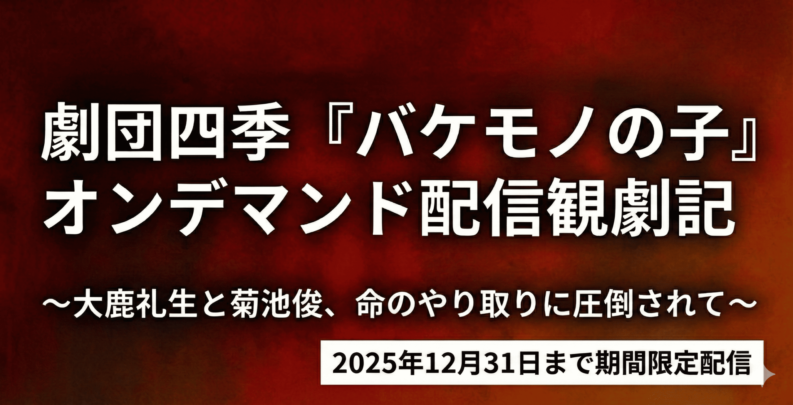 各配信サイトでの12月31日までの限定配信。これは年末のお供としておすすめしたい。