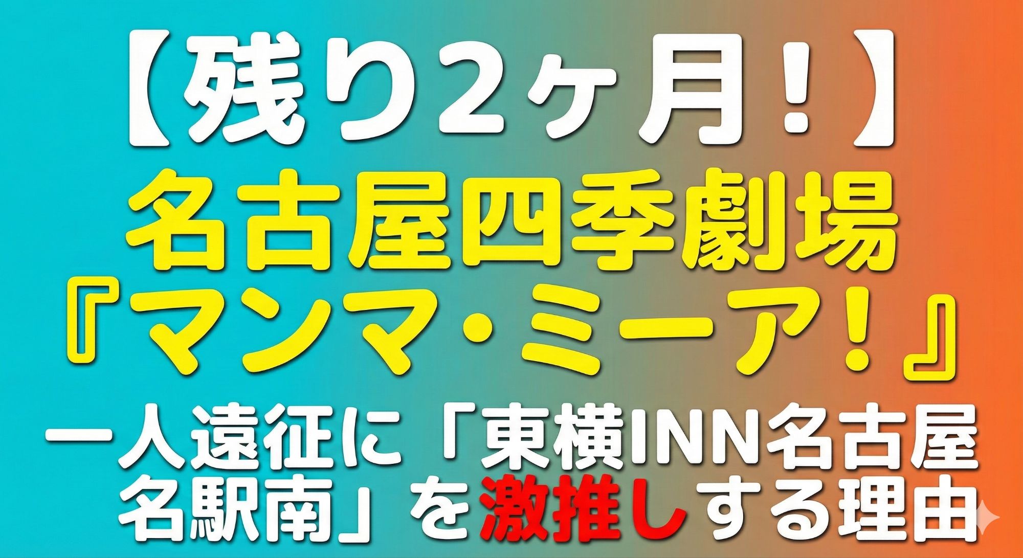 今回は、残り少ない公演期間の遠征拠点として、私がおすすめするホテル**「東横INN名古屋名駅南」**をご紹介します。